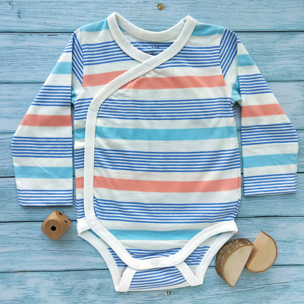 Wrap your little one in the luxury of our Premium 100% organic cotton kimono onesies , crafted from soft, premium 100% organic cotton. Comfort and function meet in our range of daily wear, cross-body kimono onesies, designed to provide optimal ease and wearability during nappy and changing times. Rejoice in the assurance that your little one is wrapped in the best of lounge wear. Pair them with bloomers, pants and shorts for that perfect look.