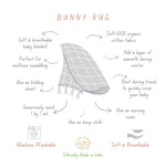 Snuggle up with our Bunny Rug! 100% organic cotton is Knitted to perfection for a cosy, multifunctional piece. Its versatility keeps your baby warm and secure—from a blanket to a swaddle. Gift your little one luxurious comfort!