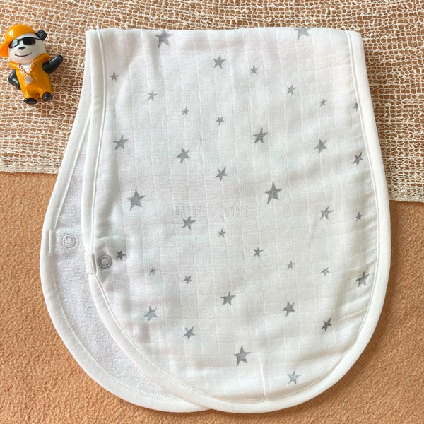 Prepare for parenthood with our must-have baby Burp Cloths, an essential item for expectant parents. These soft printed muslin cloths, crafted from organic cotton like our signature Swaddles, create a gentle and cozy resting place for your little one's delicate head and skin. The absorbent terry cloth back makes cleaning up after feeding and burping a breeze. Stay equipped for any little messes during feeding and burping sessions, and keep some extras on hand for those drool moments.
