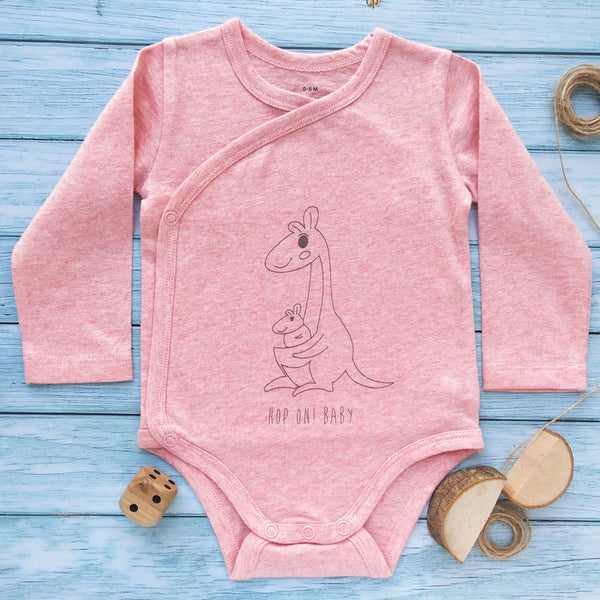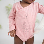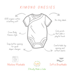 Wrap your little one in the luxury of our Roo Kimono Onesies for new born baby up to 12 months, crafted from soft, premium 100% organic cotton. Comfort and function meet in our range of daily wear, cross-body kimono onesies, designed to provide optimal ease and wearability during nappy and changing times. Rejoice in the assurance that your little one is wrapped in the best of lounge wear . Pair them with bloomers, pants and shorts for that perfect look.