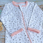 Introducing Star print zippered grow suit – the perfect accessory for your little superstar. Upgrading their style with a classic star print, the Grow Suit provides function and form in one chic package. Whether they are getting a good night’s sleep, enjoying an evening stroll, or lounging all day, this suit offers total comfort and protection against bug bites. Its easy pull zip and flap near the neck make dressing up your little one effortless.