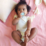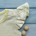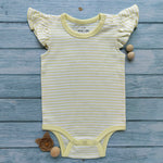 Adorn your cutie in these delightful, Frilled Rompers Super Stripes made from 100% organic cotton. Make your darling girl feel as trendy as a total fashionista with these mischievous stripes. Trust that diaper changes are quick and easy with snap-button closure, ensuring your precious one's comfort and protection.