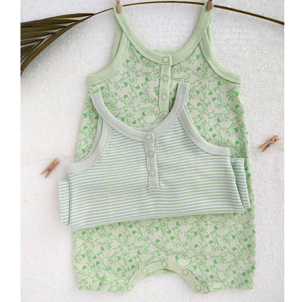 Introducing a collection exclusively crafted for style and comfort, this limited edition Fresh Green Sleeveless Leg Suit Set of 2 is the perfect choice for your little one this summer. Our signature soft colours and deliciously soft fabric, crafted from 100% organic cotton, promise a luxurious and comfortable experience for babies aged 0 to 24 months. Make sure your little one enjoys their summer in style.