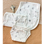 Introducing the perfect combo pack for your baby, featuring a delightful galaxy print burp cloth, nappy, and jabla. This adorable set is crafted from 100% organic muslin cotton fabric, ensuring comfort and safety for your little one. All three items are proudly part of our signature collection, designed to provide the best for your baby's needs. Prepare for parenthood with this charming and eco-friendly baby essential set that guarantees a delightful experience for both you and your precious bundle of joy.