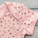 Onesies featuring pretty patterns are made from certified organic cotton and feels softest on baby’s skin. A lapped shoulder means easy on and off from top or bottom, and added snaps make changes quick as can be.