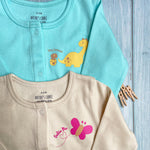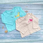 New Born Baby Full Sleeve Top Set Of 2 - 100% Organic Cotton - Dino & Butterfly