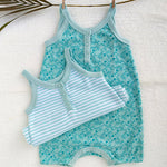 Introducing a limited edition set of two of our Classic brilliant blue giraffe sleeveless leg suits, crafted with 100% organic cotton for babies 0 months to 24 months. This exclusive collection of summer wear is designed for style and comfort, and promises softness and functionality in our signature soft colours and deliciously soft fabric.Â